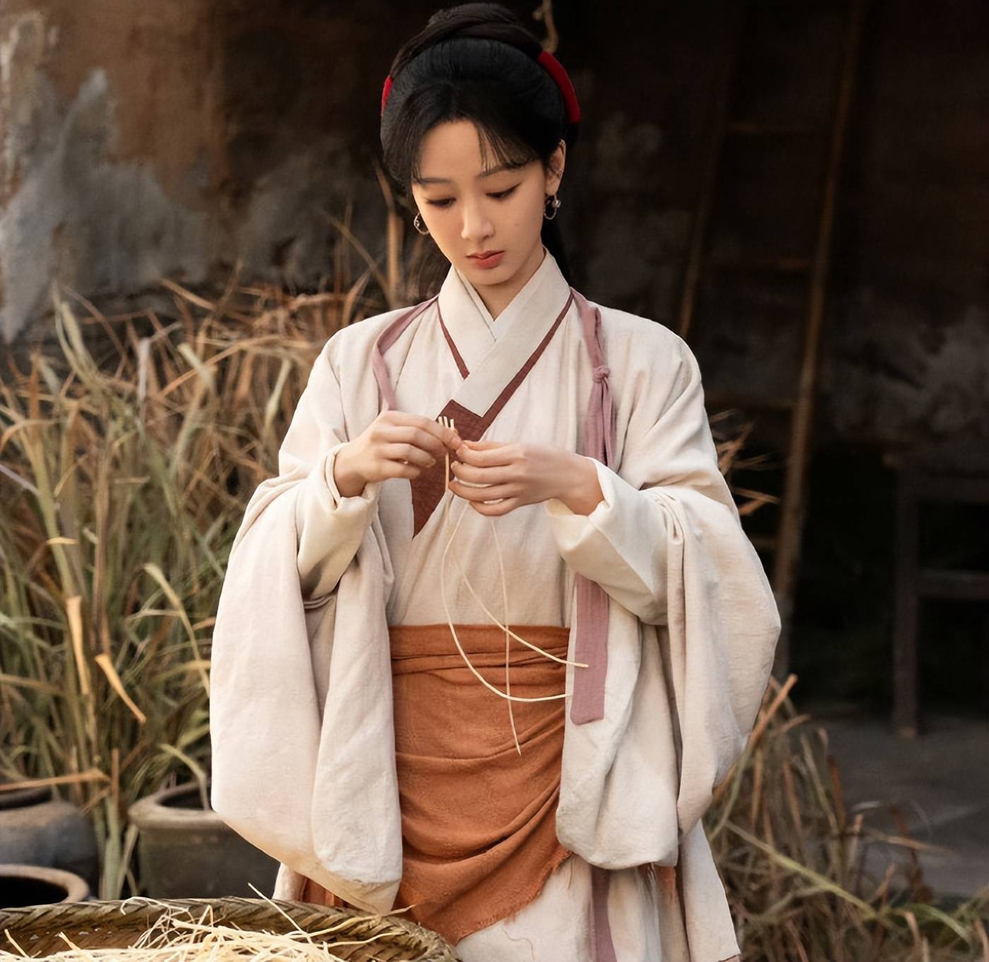 杨紫在剧中也有净水出芙蓉的素衣造型,落地感很强,穿戴粗布麻衣也难掩倾城国色。